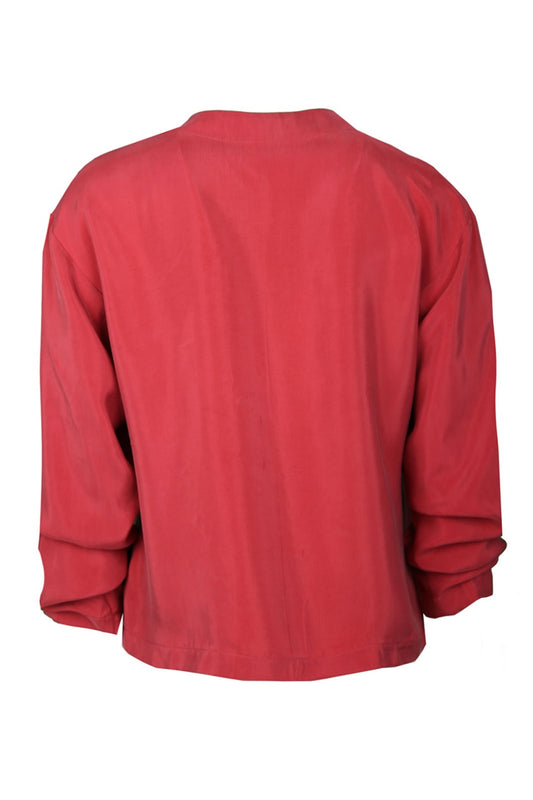 Bruce Gül Kurusu Yakasız Taşlanmış İpek Saten Gömlek