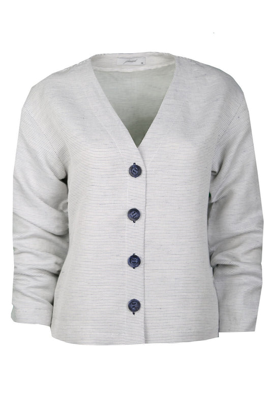 Bruce Beyaz Lacivert Yakasız Pamuklu Gömlek