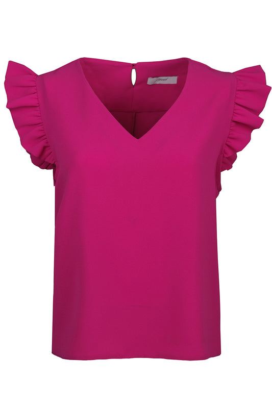 Lisa Koyu Pembe V Yaka Fırfırlı Bluz