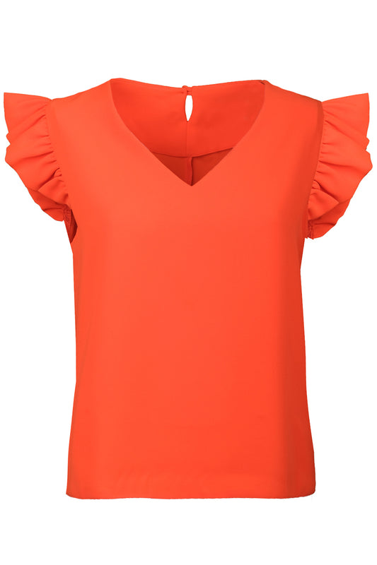 Lisa Turuncu V Yaka Fırfırlı Bluz