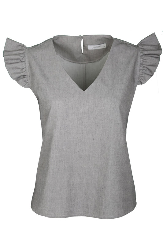 TükendiLisa Gri V Yaka Fırfırlı Bluz