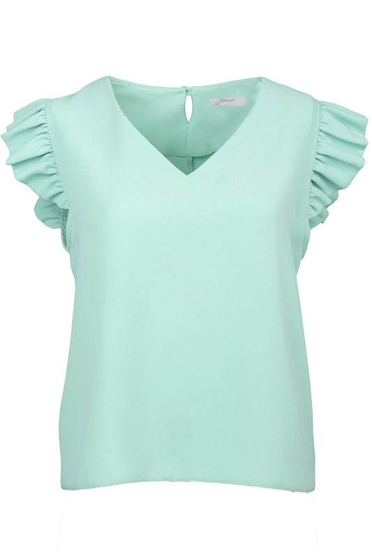 TükendiLisa Yeşil V Yaka Fırfırlı Bluz