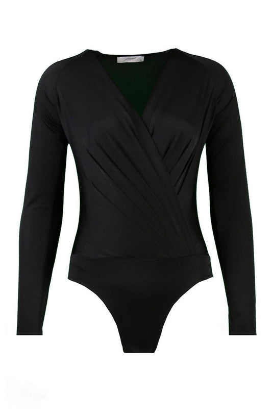 Carol Siyah Kruvaze Yaka Uzun Kollu Body