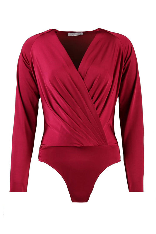 Carol Bordo Kruvaze Yaka Uzun Kollu Body