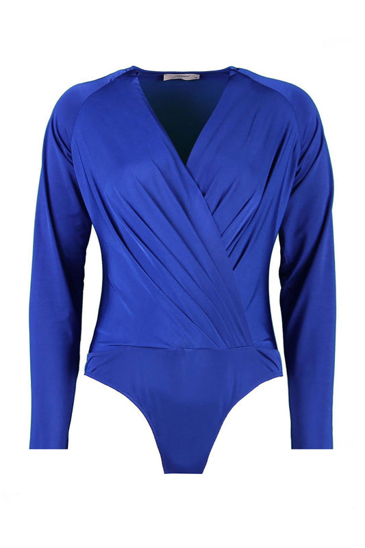 Carol Kobalt Mavi Kruvaze Yaka Uzun Kollu Body