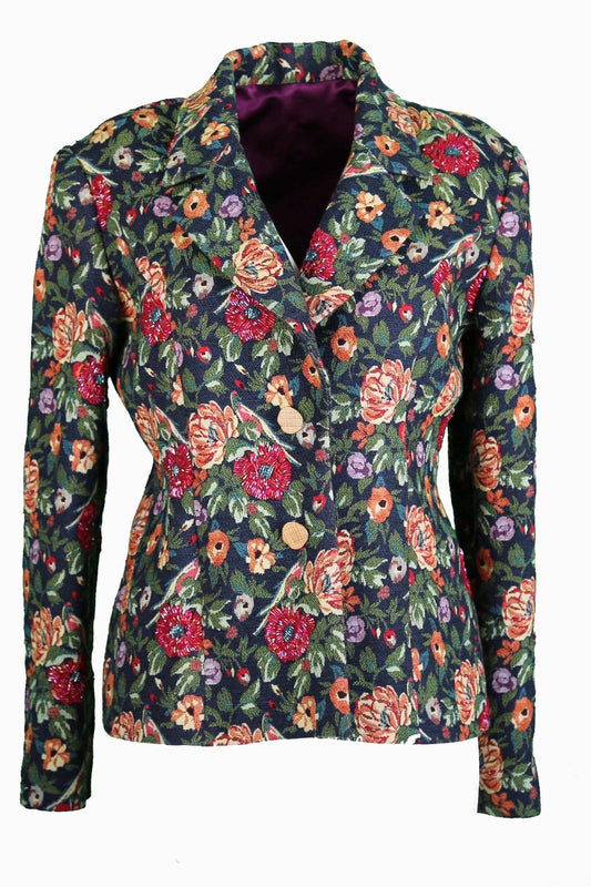 Berthe Simli Çiçek Desenli Brokar Kadın Ceket