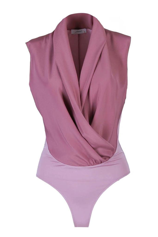 İndirimEstee Pembe Şal Yaka Kolsuz Body