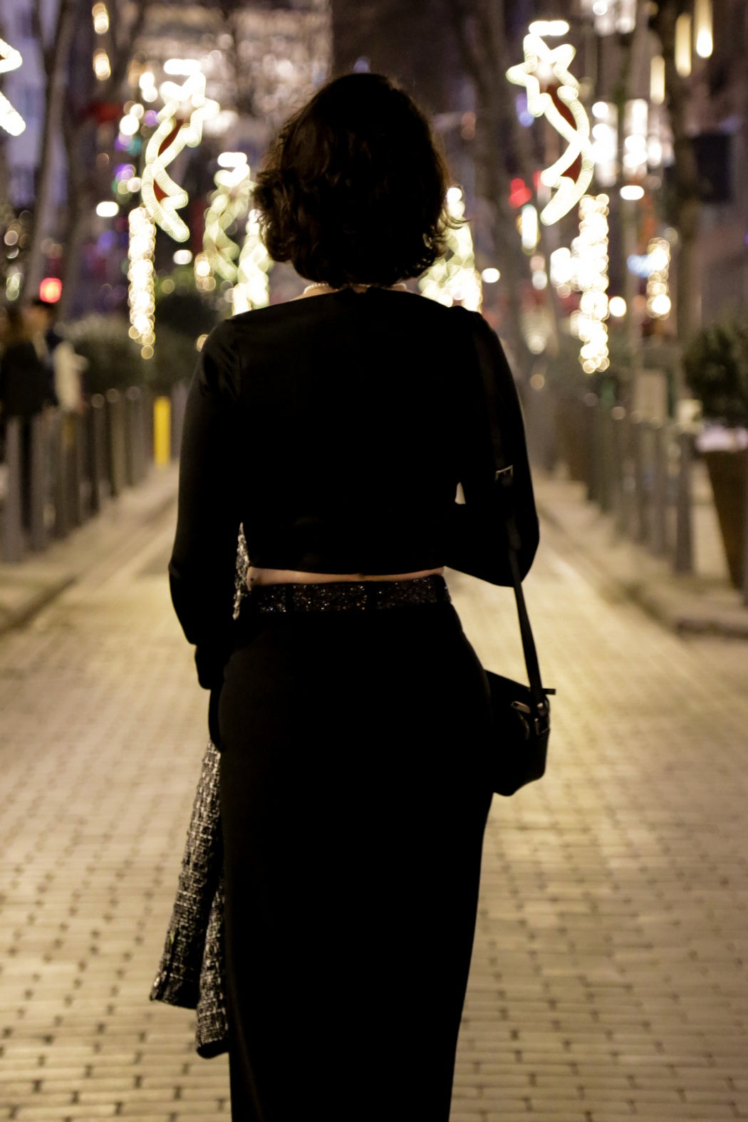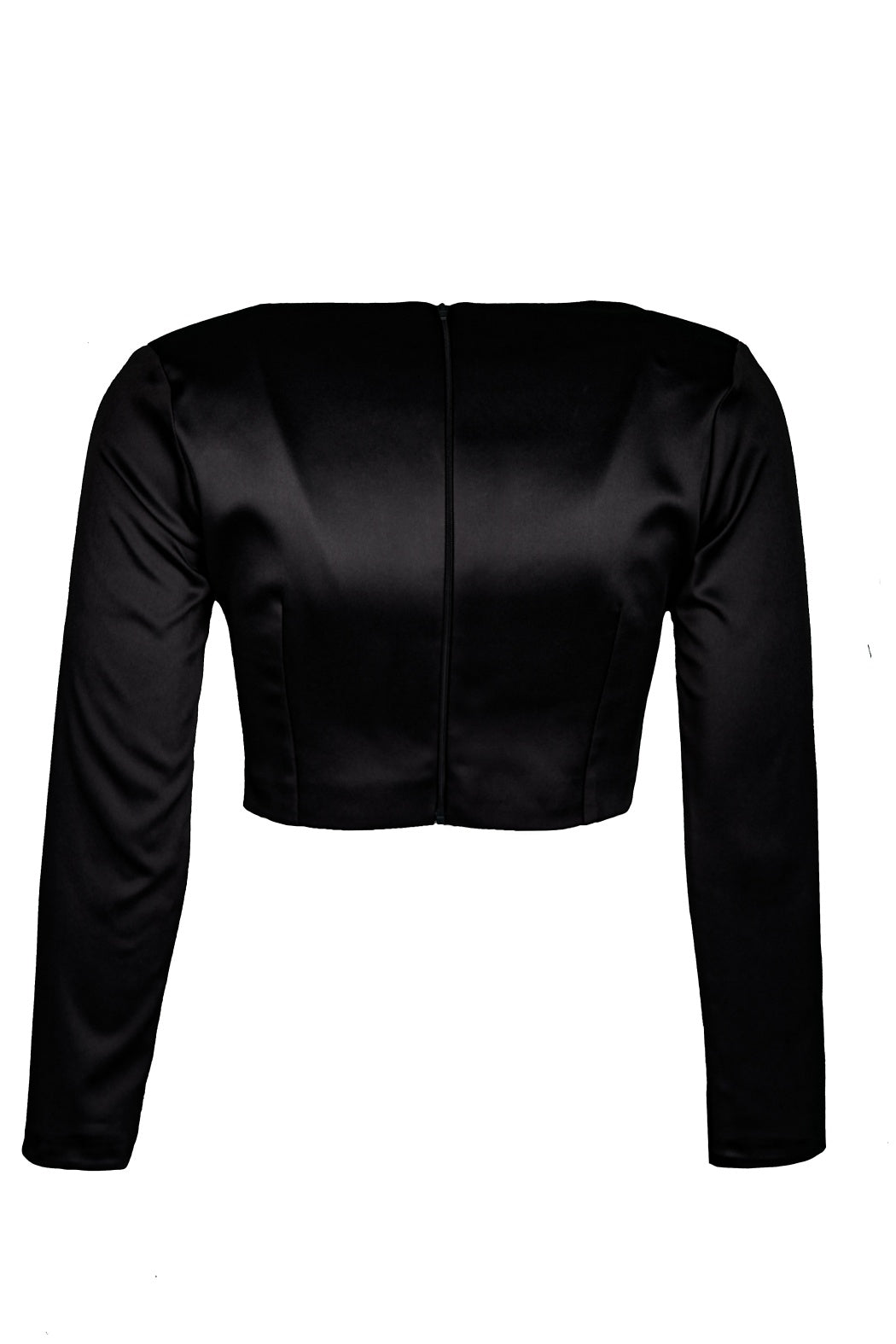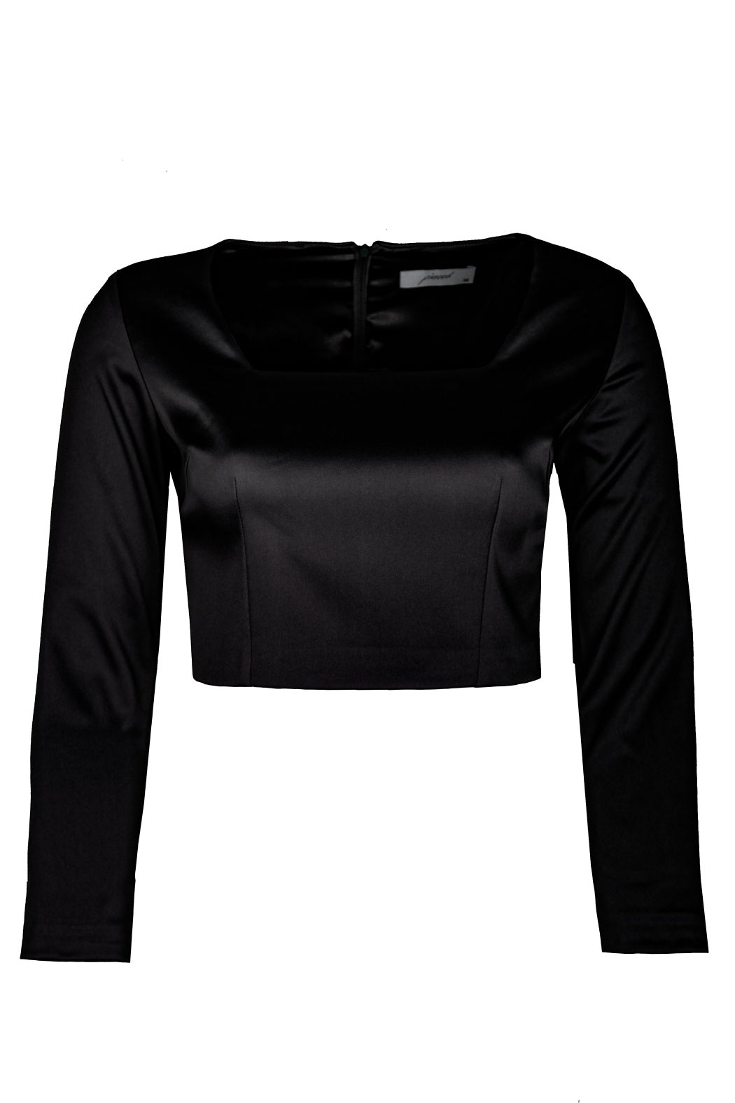 Aida Siyah Kare Yaka Crop Saten Büstiyer