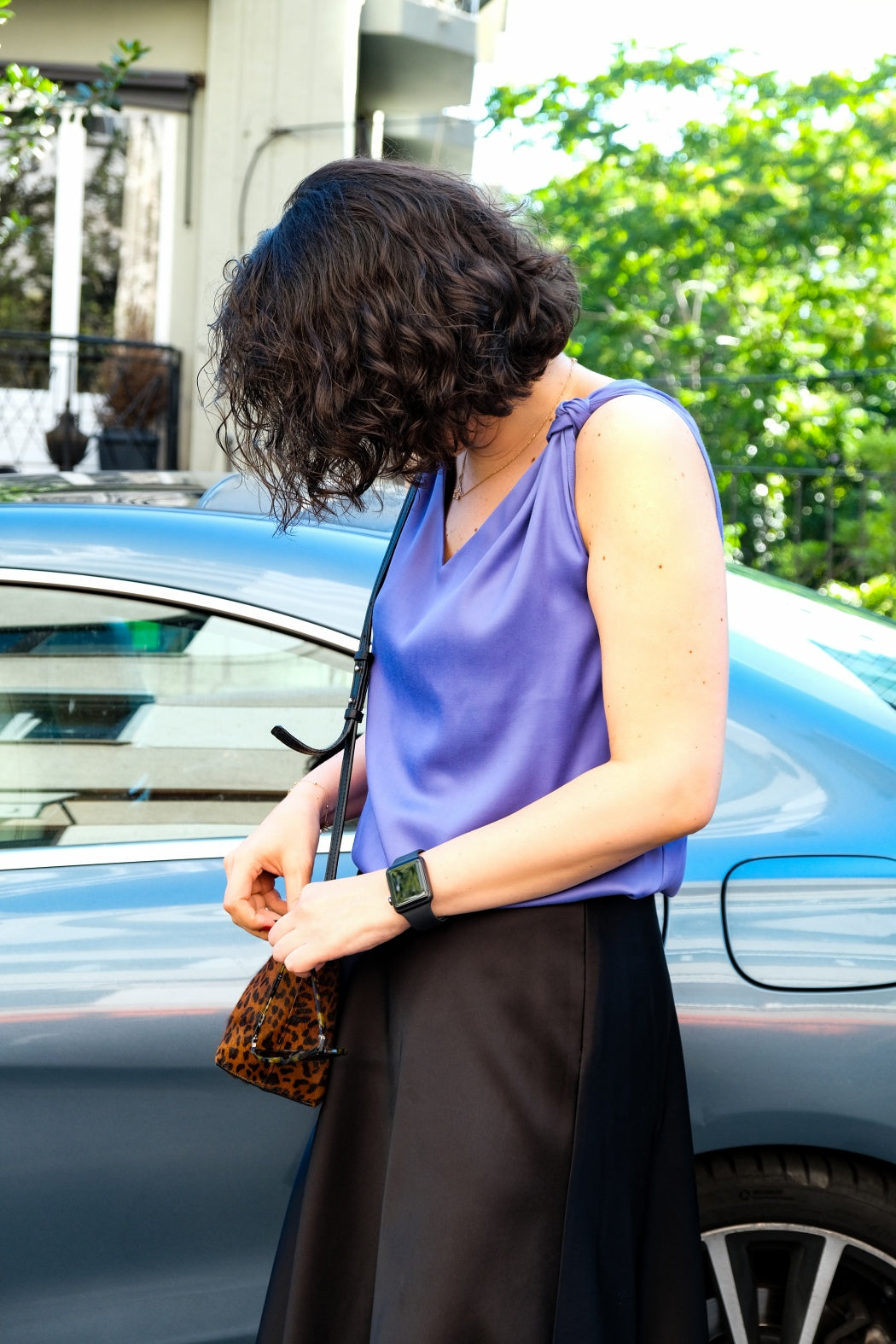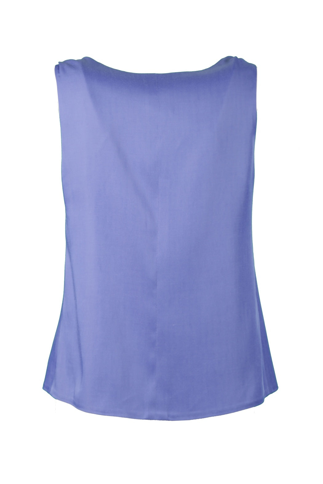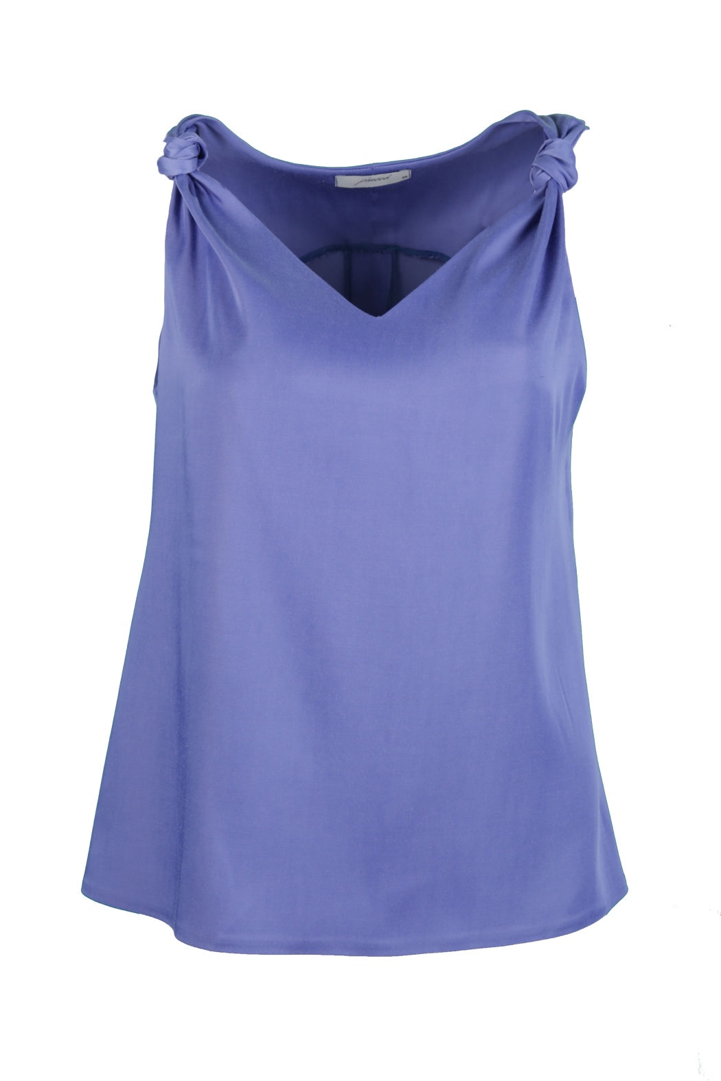 *V yakalı, kolsuz, omuzda düğüm detaylı, kadın bluz