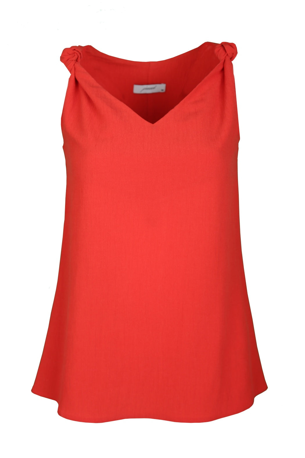 *V yakalı, kolsuz, omuzda düğüm detaylı, kadın bluz