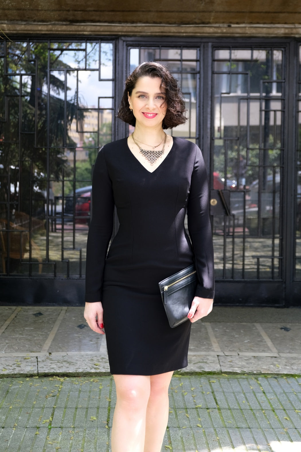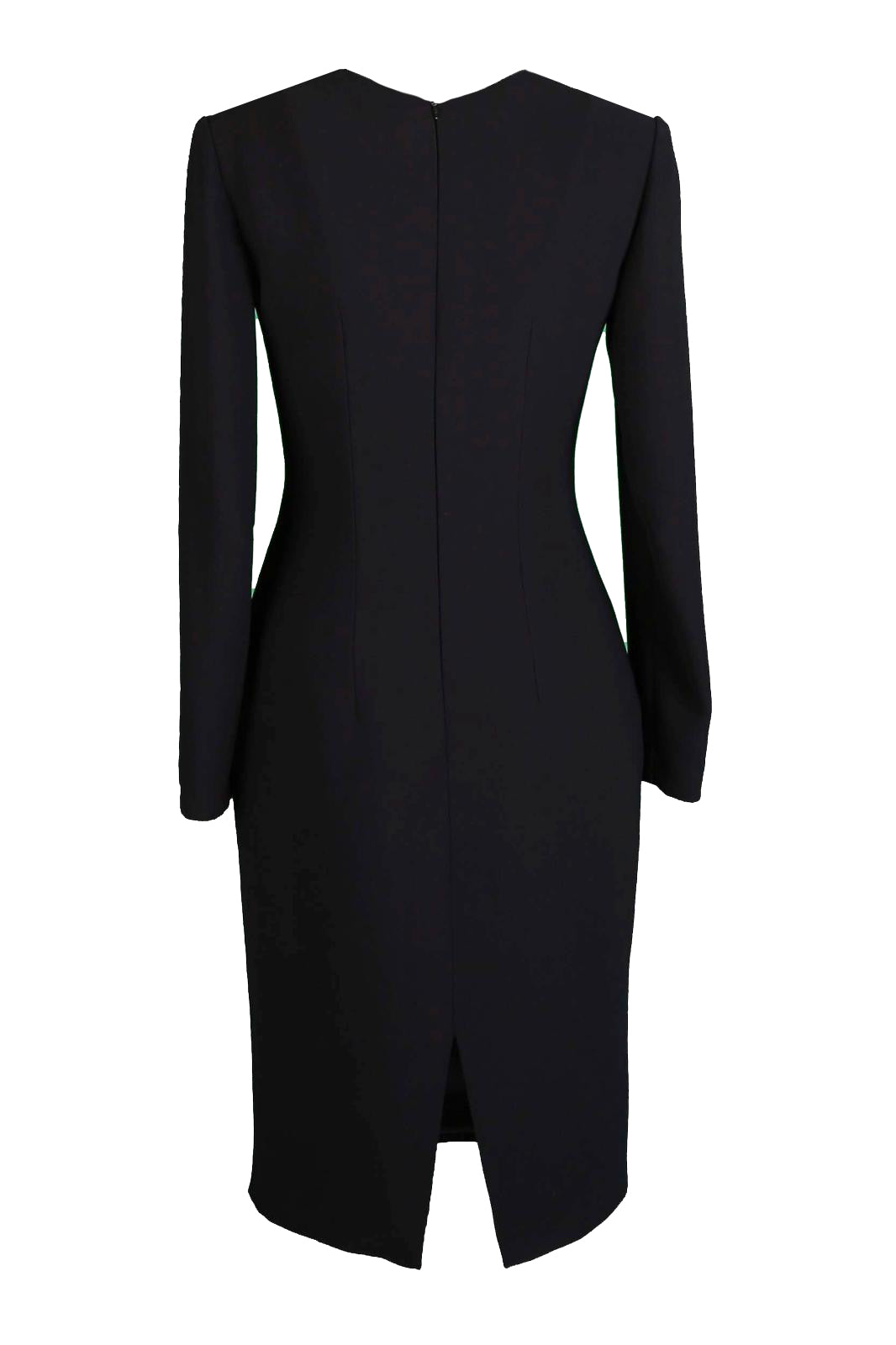 Belle Siyah V Yakalı Uzun Kollu Kalem Elbise