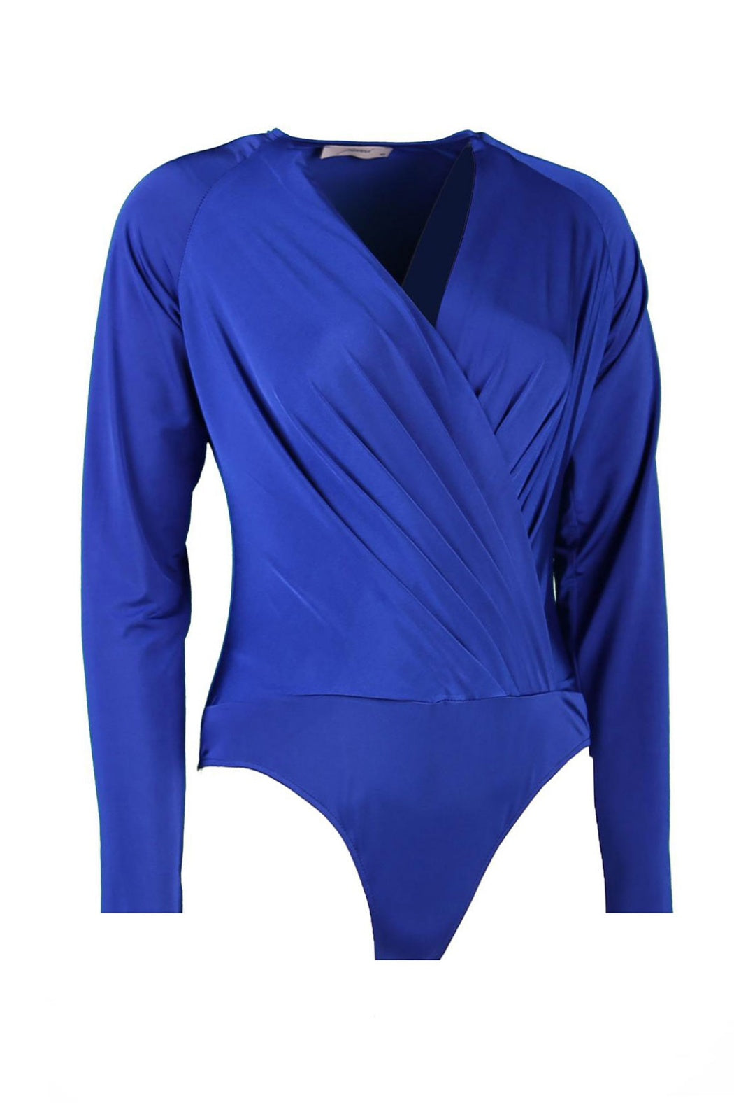 Carol Kobalt Mavi Kruvaze Yaka Uzun Kollu Body