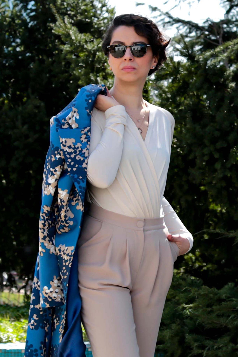 Derya Erdemli Carol Krem Kruvaze Yaka Uzun Kollu Body