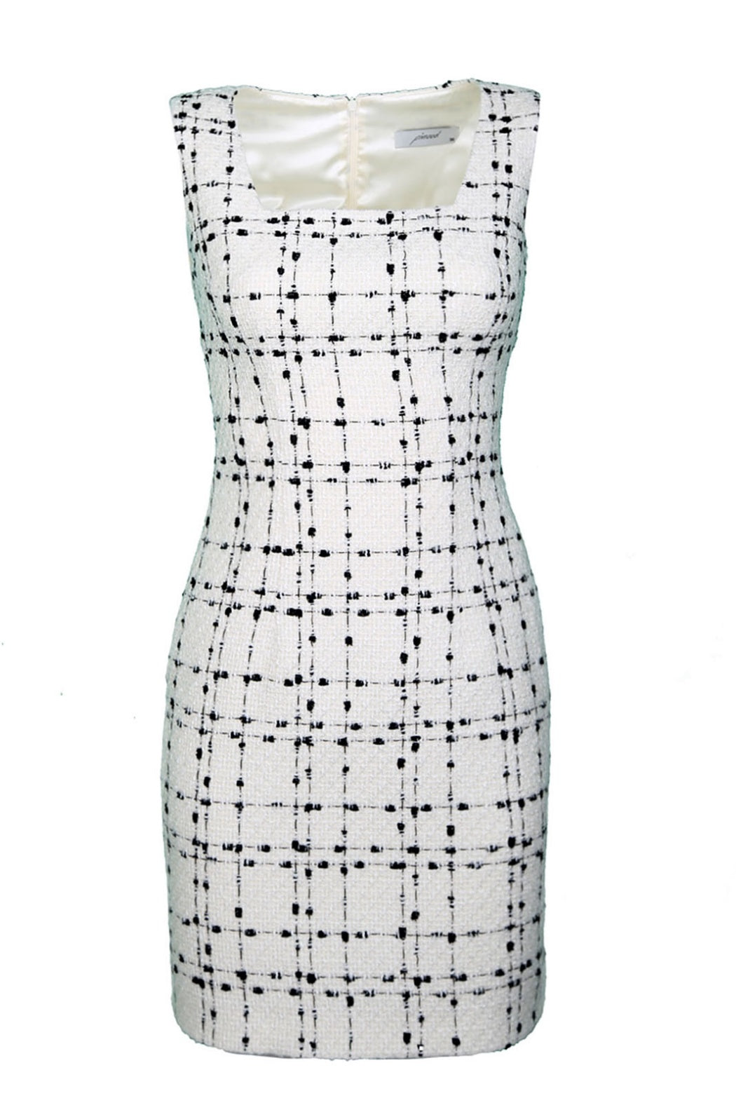 Coco Beyaz Kare Yakalı Kolsuz Mini Elbise