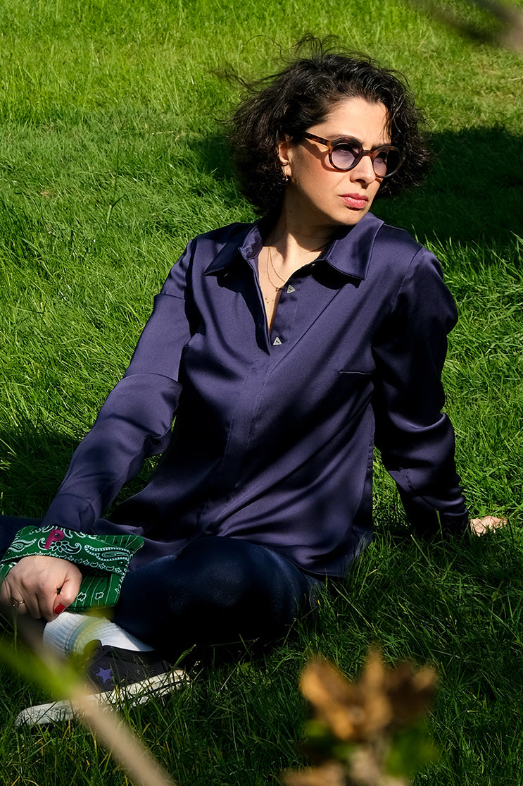 Eliza Lacivert Basic Model İpek Saten Gömlek