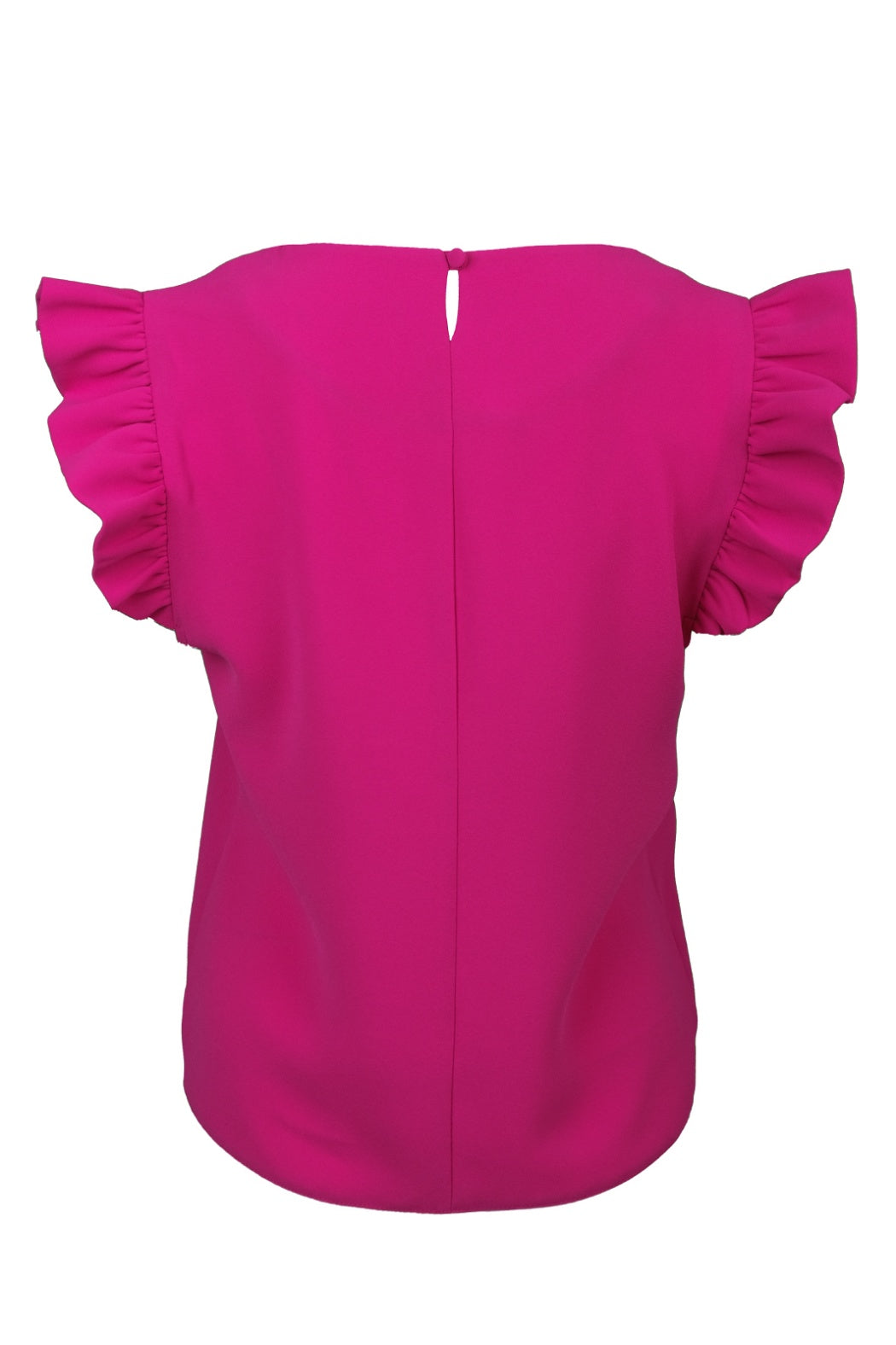 *Koyu pembe, fırfır omuz detaylı, kolsuz kadın bluz