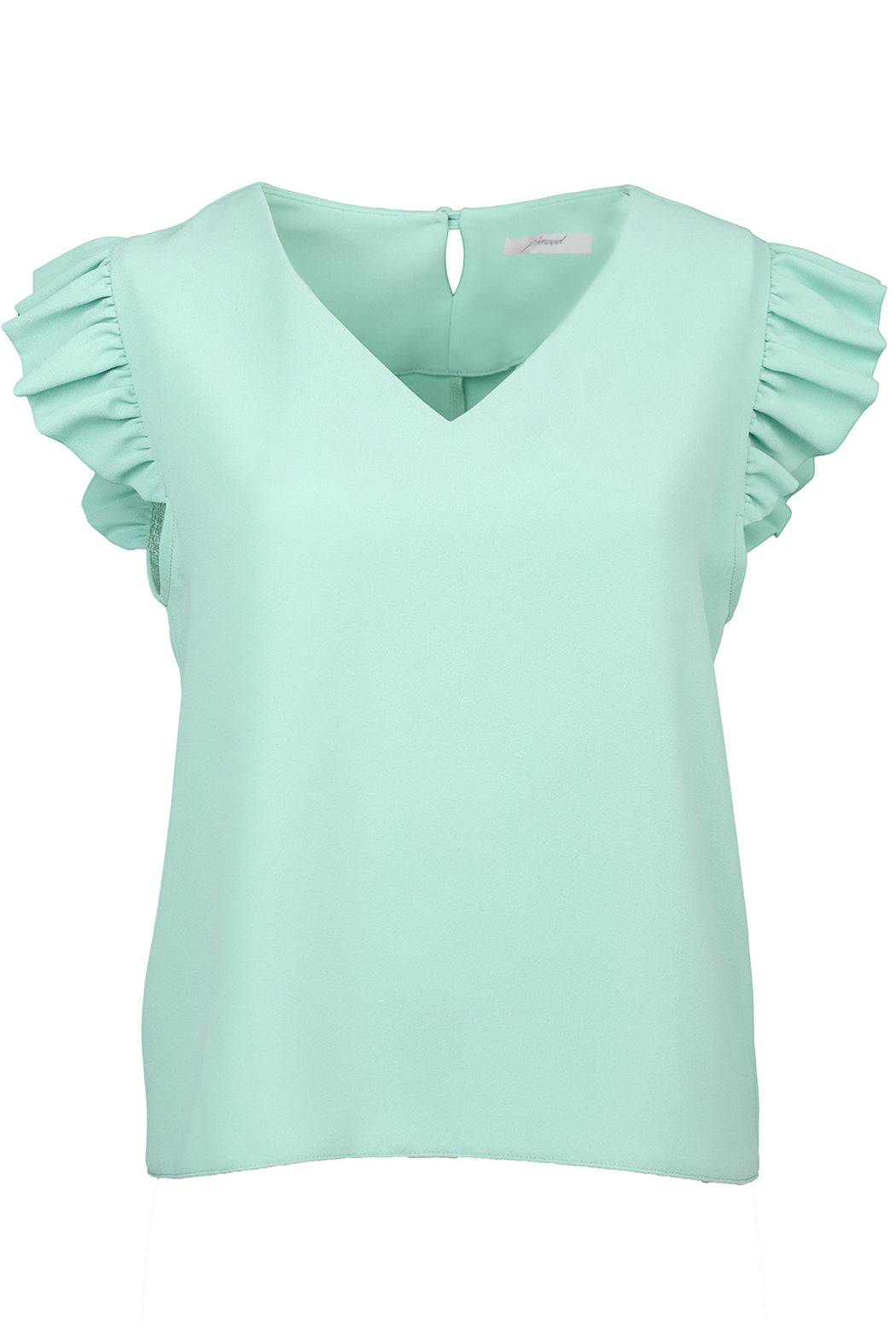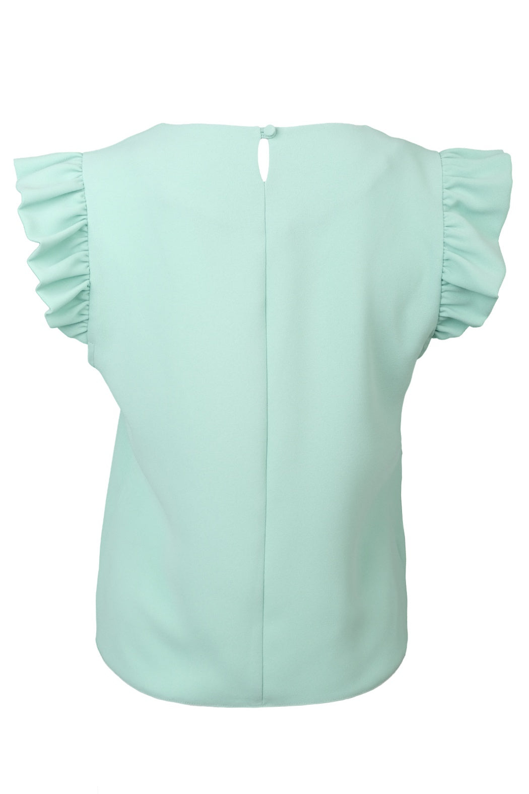 *Yeşil, fırfır omuz detaylı, kolsuz kadın bluz