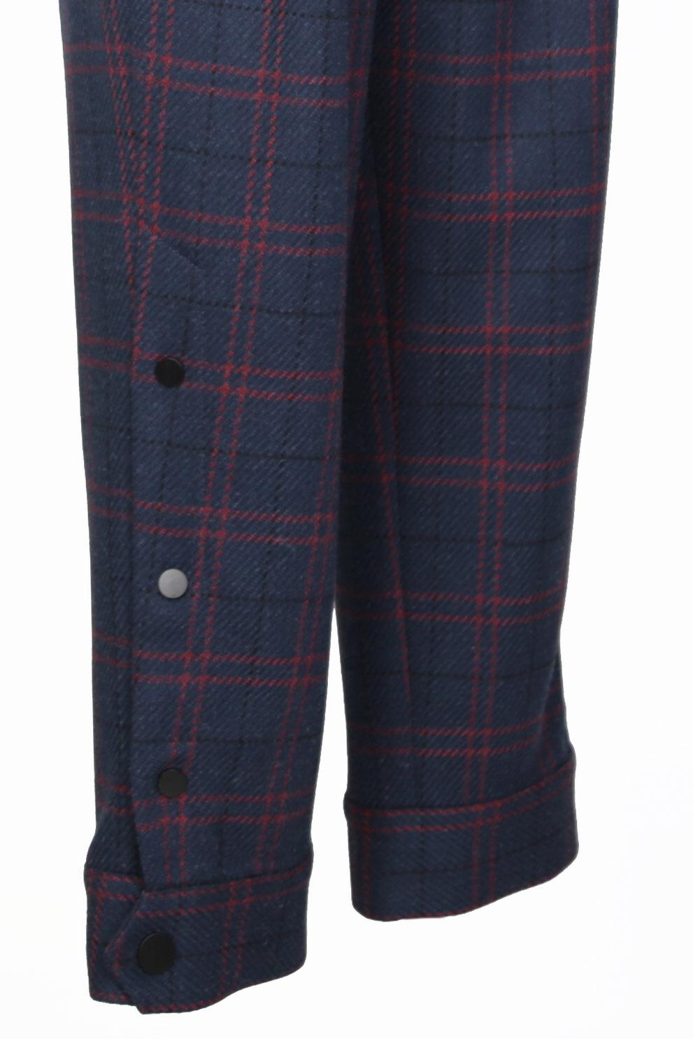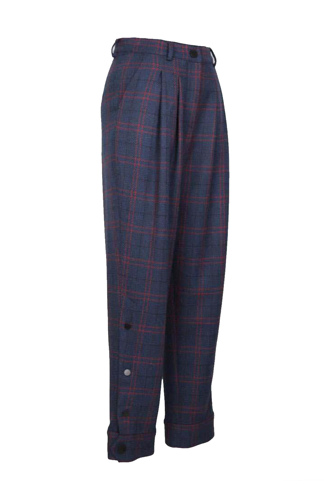 Marvel Lacivert Ekoseli Pileli Manşetli Yün Pantolon