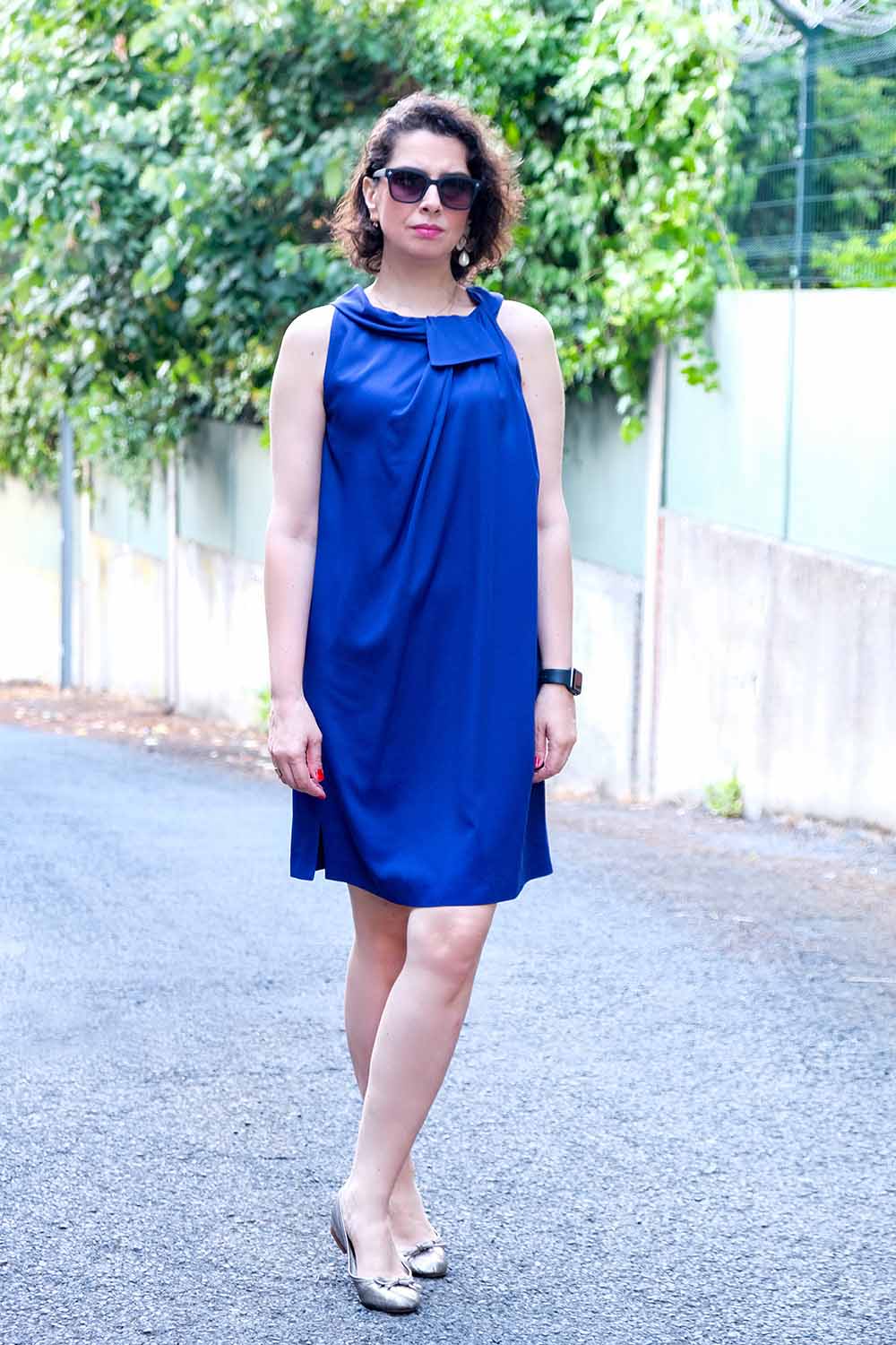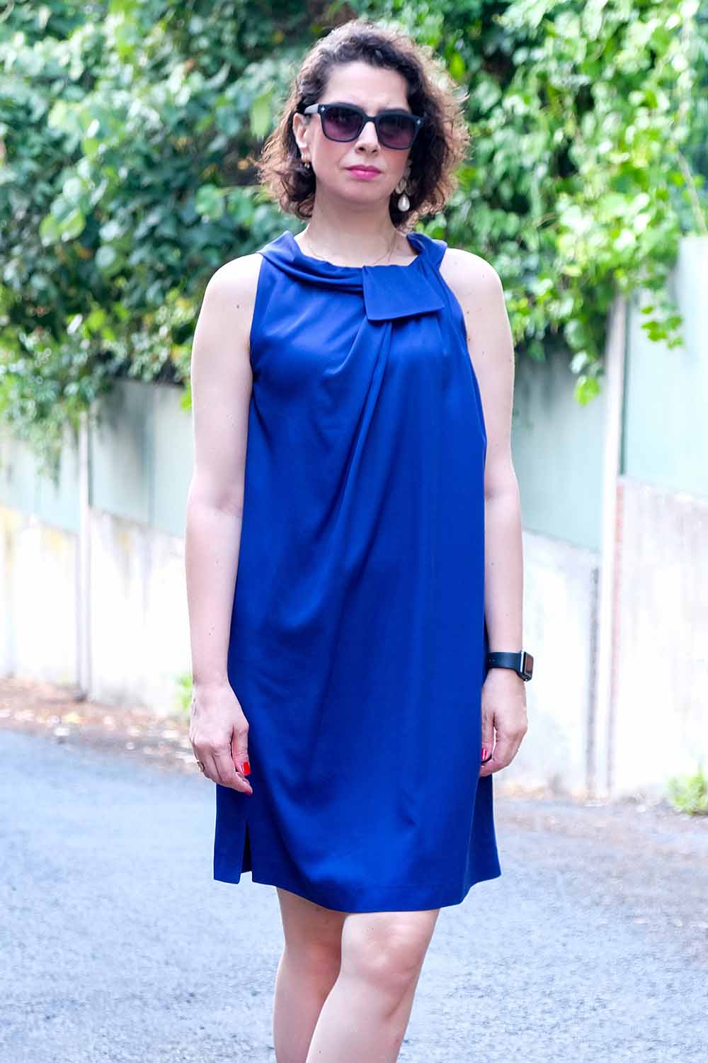 Nelly Saks Mavi Kolsuz Bol Kesim Mini Elbise