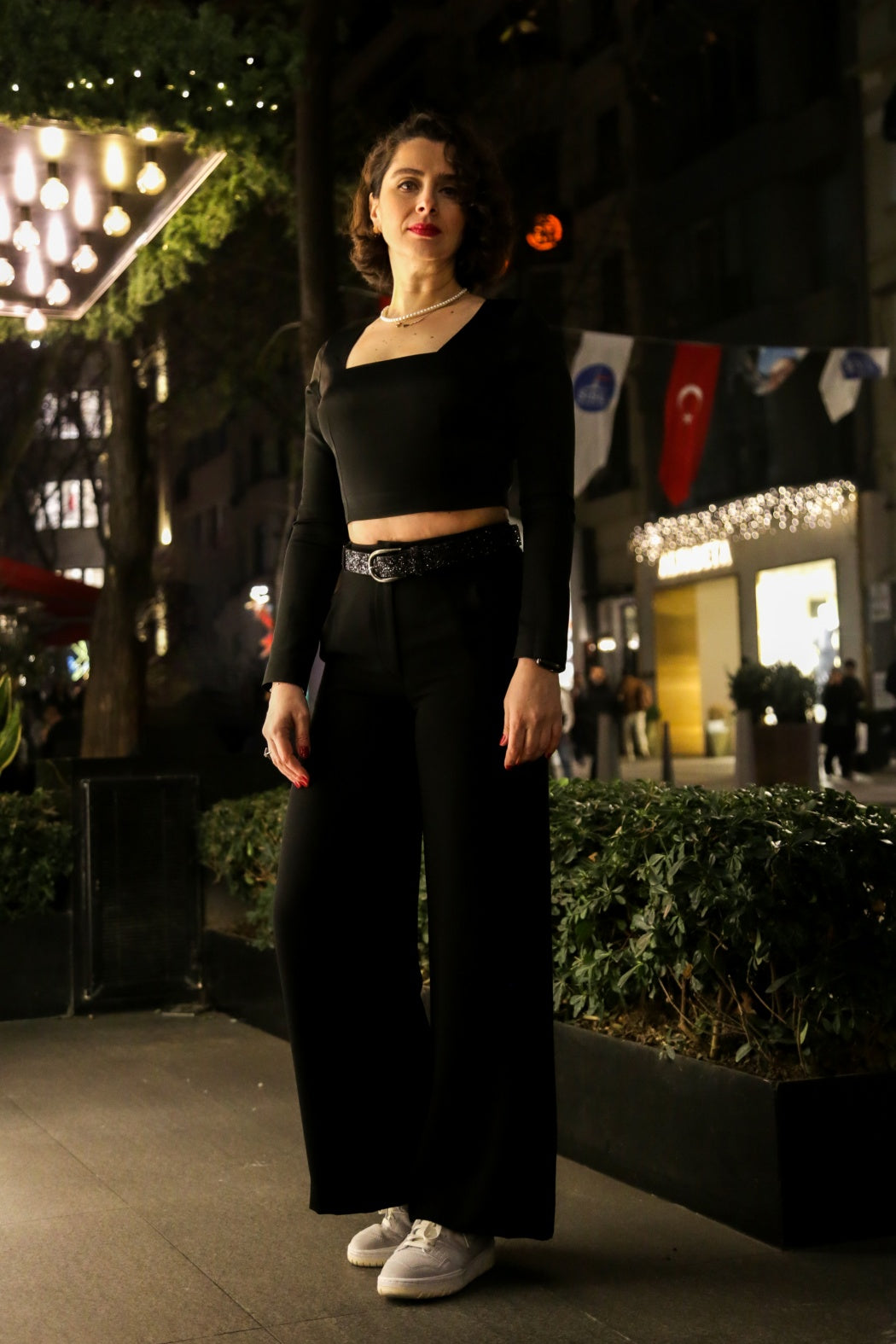 Niki Siyah Yüksek Belli Bol Kesim Krep Pantolon